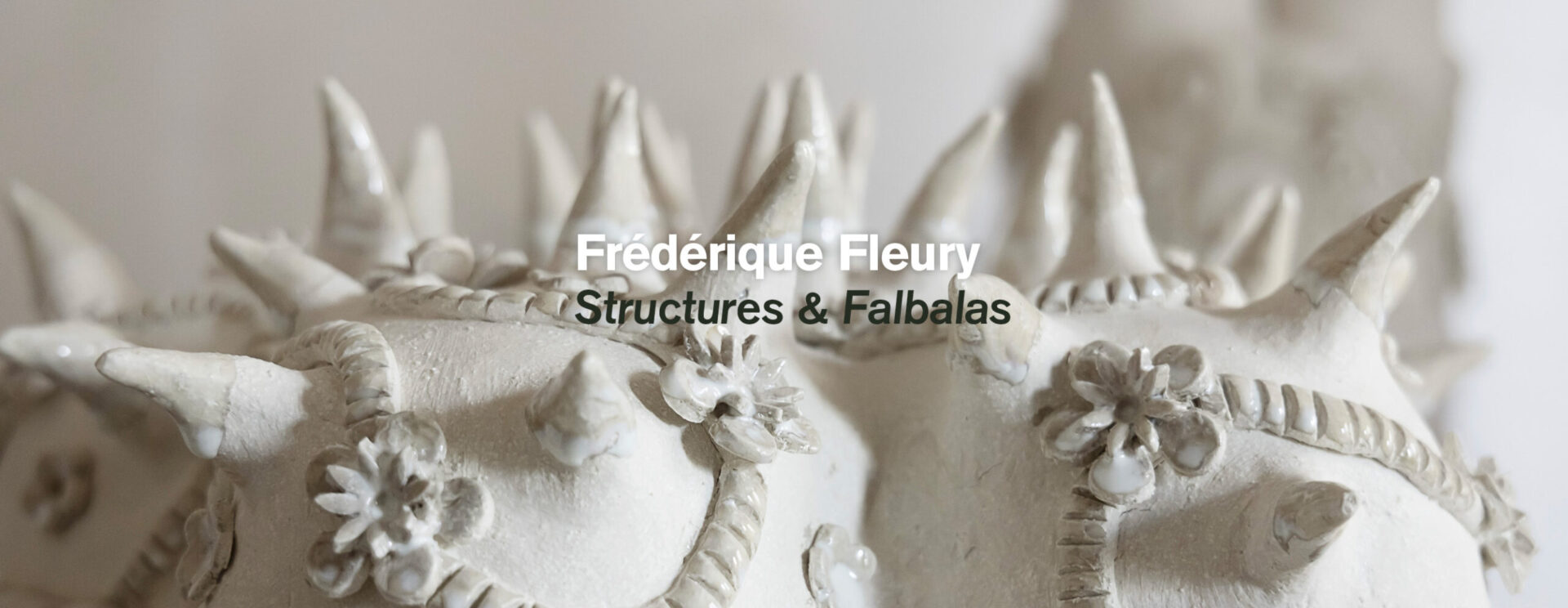 Qu’elles soient de petite taille ou bien monumentales, les œuvres de Frédérique Fleury peuvent être agglomérées entre elles pour occuper l’espace dans ses trois dimensions. Elles présentent un savant assemblage entre des textiles raffinés, précieux, ou anoblis par un savoir-faire vernaculaire, et une matière minérale qui se modèle, se façonne, tel le grès ou la terre chamottée : l’un qui se modèle et durcit à la cuisson, l’autre plus souple, mais qui, apprêté, tendu ou rembourré finit par acquérir lui aussi un aspect rigide. L’association devient sculpture, avec ses excroissances, ses protubérances et autres appendices harmonieux. « La clé de son travail réside sans doute dans cet attachement, cette tension entre les matières mais aussi entre les formes elles-mêmes » explique Coralie Duponchel, directrice du centre d’art.