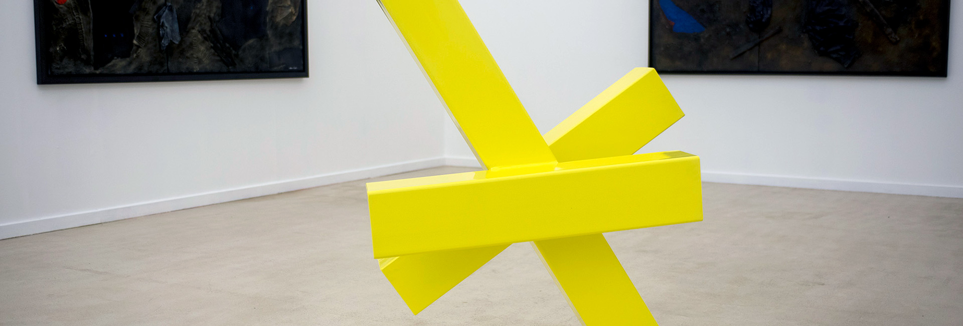 Ses œuvres sculptées sont monumentales parce que dès que l’idée émerge, dès qu’il commence à travailler il pense monumental. Lorsqu’il évoque ses influences, elles sont immanquablement espagnoles. Et de citer Chilida, Oteiza, Tapiès. Celui que César appelait le Marseillais a fait les Beaux-arts, puis a œuvré dans l’architecture. On reconnaît dans son travail le tracé des lignes, le dessin pur. Pour ses sculptures, il commence par dessiner en tout petit, puis passe à la maquette en bois et au métal à une échelle quelque peu supérieure. Là il peut vérifier les équilibres. L’acier pourra alors être étiré, cintré, vissé, soudé. Peint aussi, comme la pièce baptisée « Yellow submarine ». C’est paraît-il aussi à cela qu’on le reconnaît. Après le bleu Klein ou le rouge Hermès, voilà le jaune Garnier.