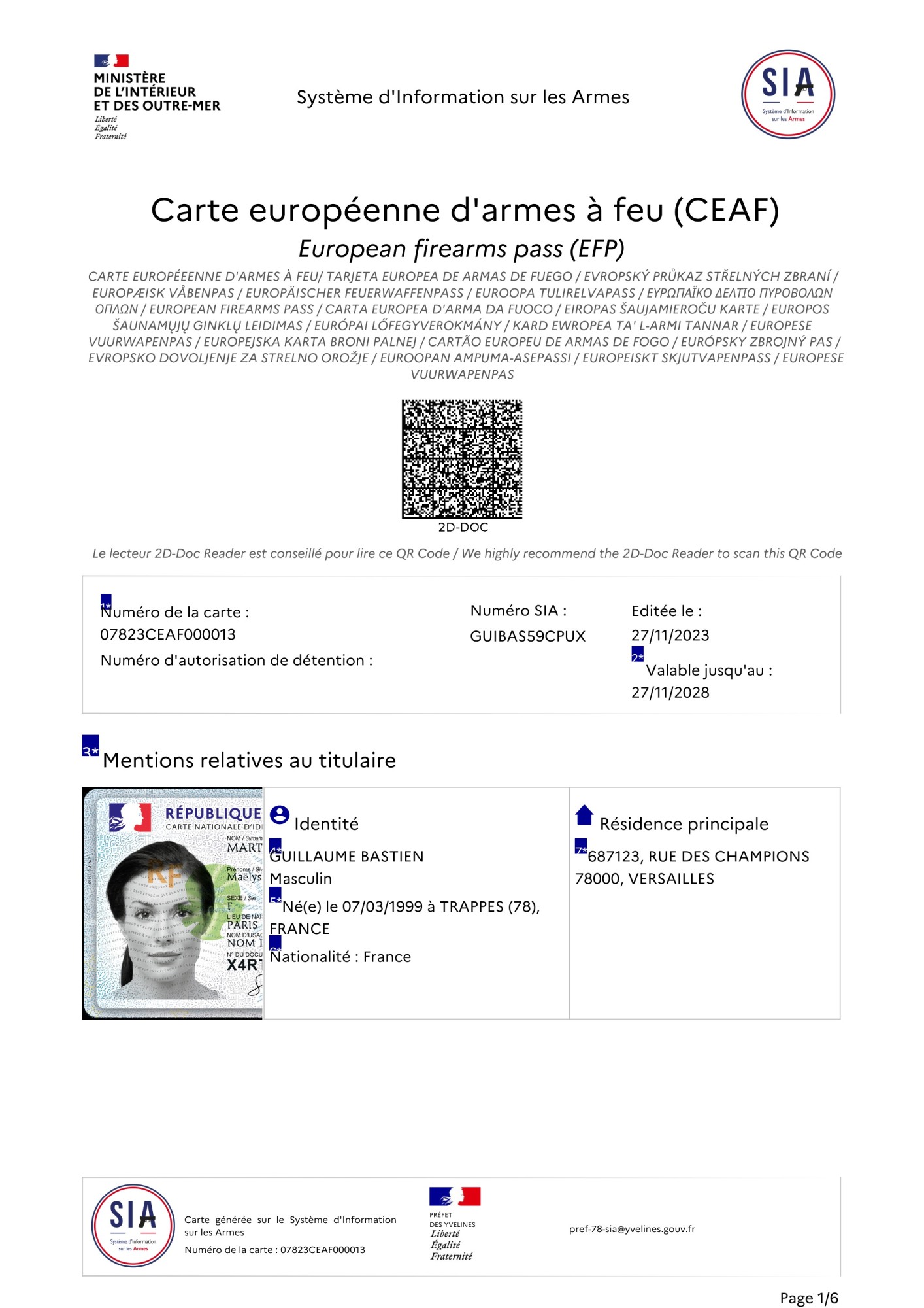Vous devez présenter la carte européenne d’armes à feu et le justificatif à toutes demandes des autorités habilitées.