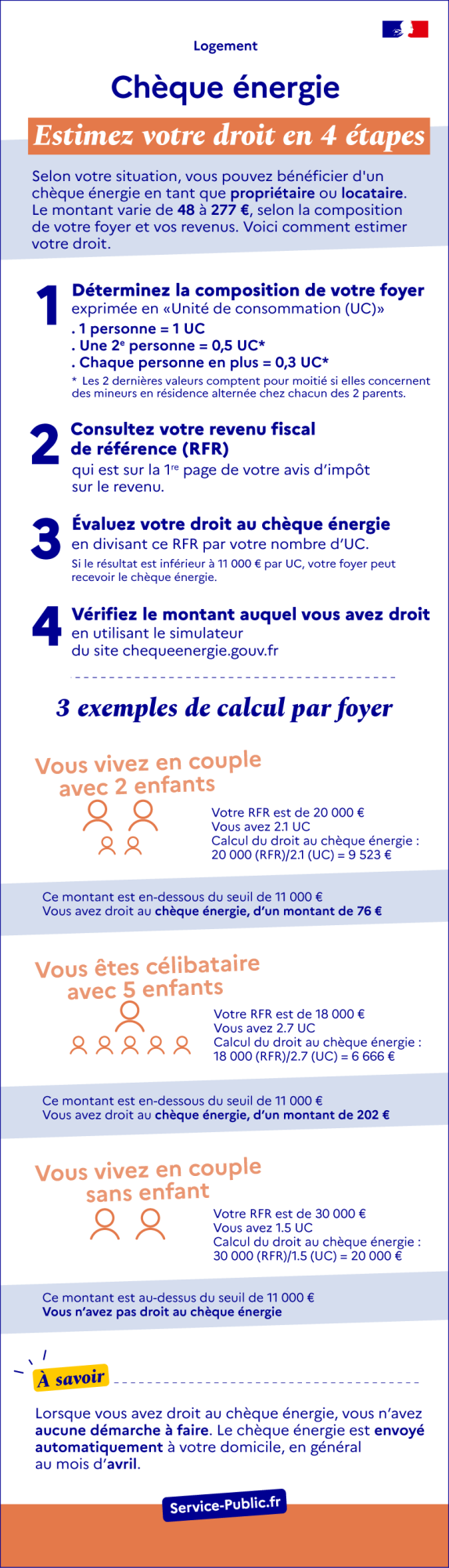 Si le résultat est inférieur à 11 000 € par UC, votre foyer peut recevoir le chèque énergie.